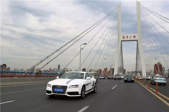 上海南浦大桥上的奥迪A7自动驾驶车型